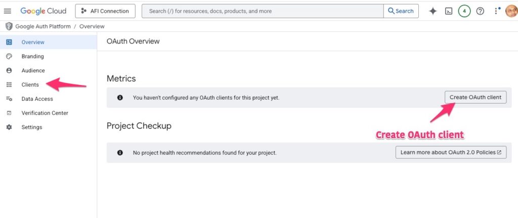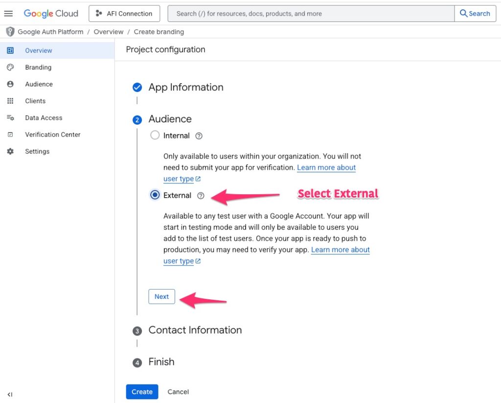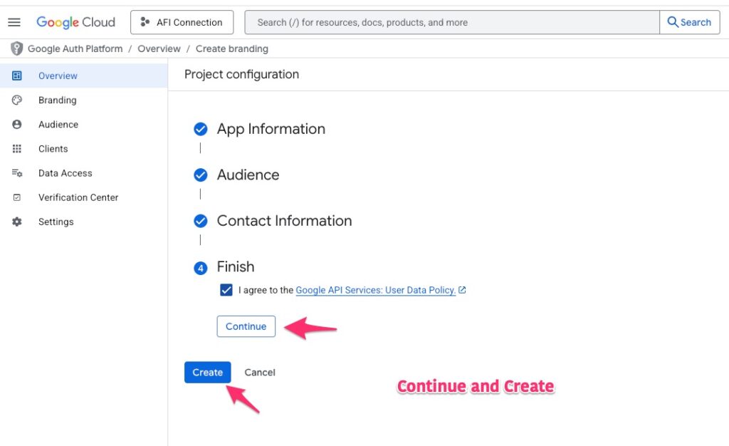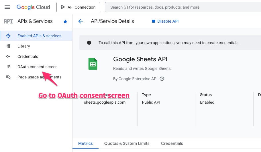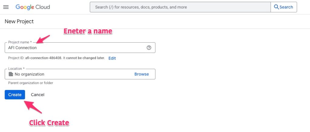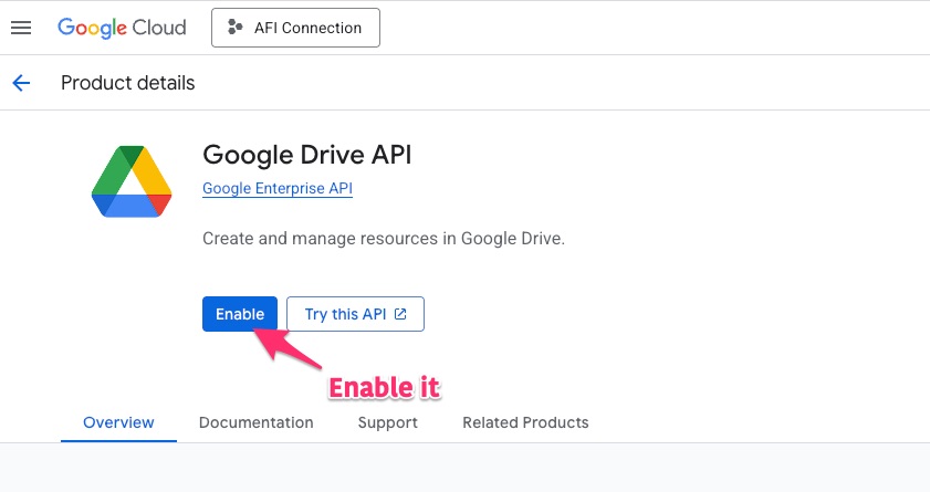 First, we need to create a Google API project to grant access to the AFI plugin. Please follow the steps outlined below: