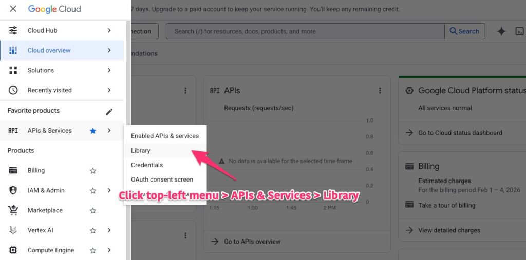 Go to Top Left Menu > APIs & Services > Library