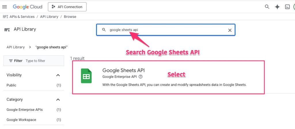 Search for Google Sheets API.