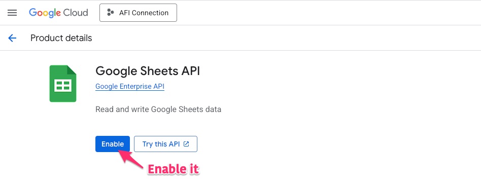 Enable Google Sheets API.