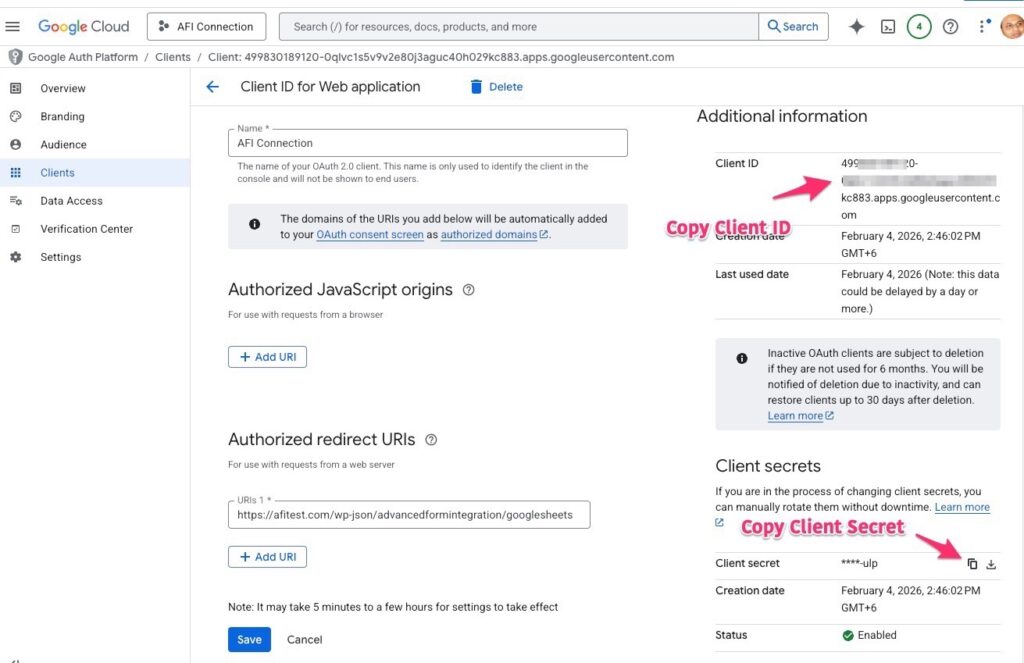 Copy both Client ID and Client Secret.