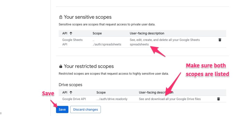 Make sure that both scopes are listed. Then click the Save button.