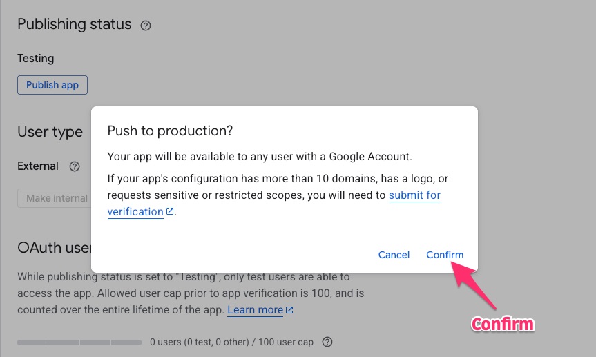 Go to Google API projects, and select the project from the upper dropdown menu. Then go to the OAuth consent screen menu. Check Publishing status. If it is on testing, click the button PUBLISH APP.